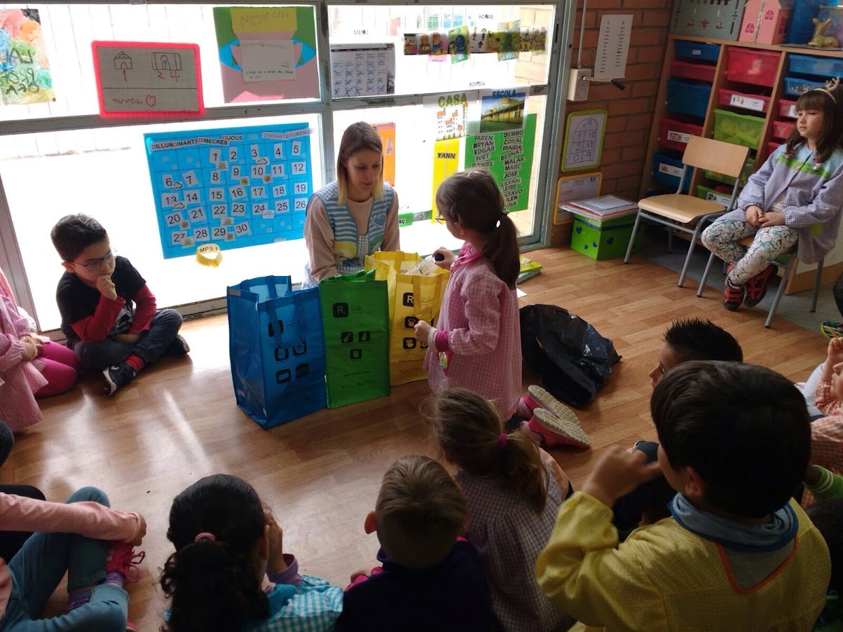 - Explicació d’un conte creat per l’ocasió a mode de presentació del concepte de les 3R: reciclar, reutilitzar i reduir; així com el concepte de Medi Ambient.